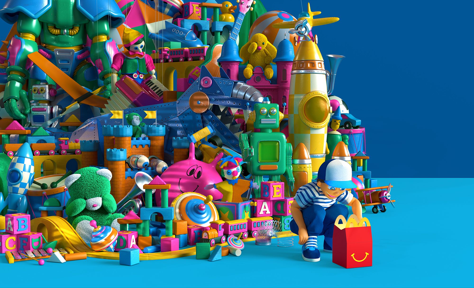Thomas Burden is a 3D artist, typographer and animation director. His work conjures notions of vague childhood recollections, forming playful, tactile worlds inspired by all the toys he wasn’t allowed as a child plus all the tv shows and books that he was.