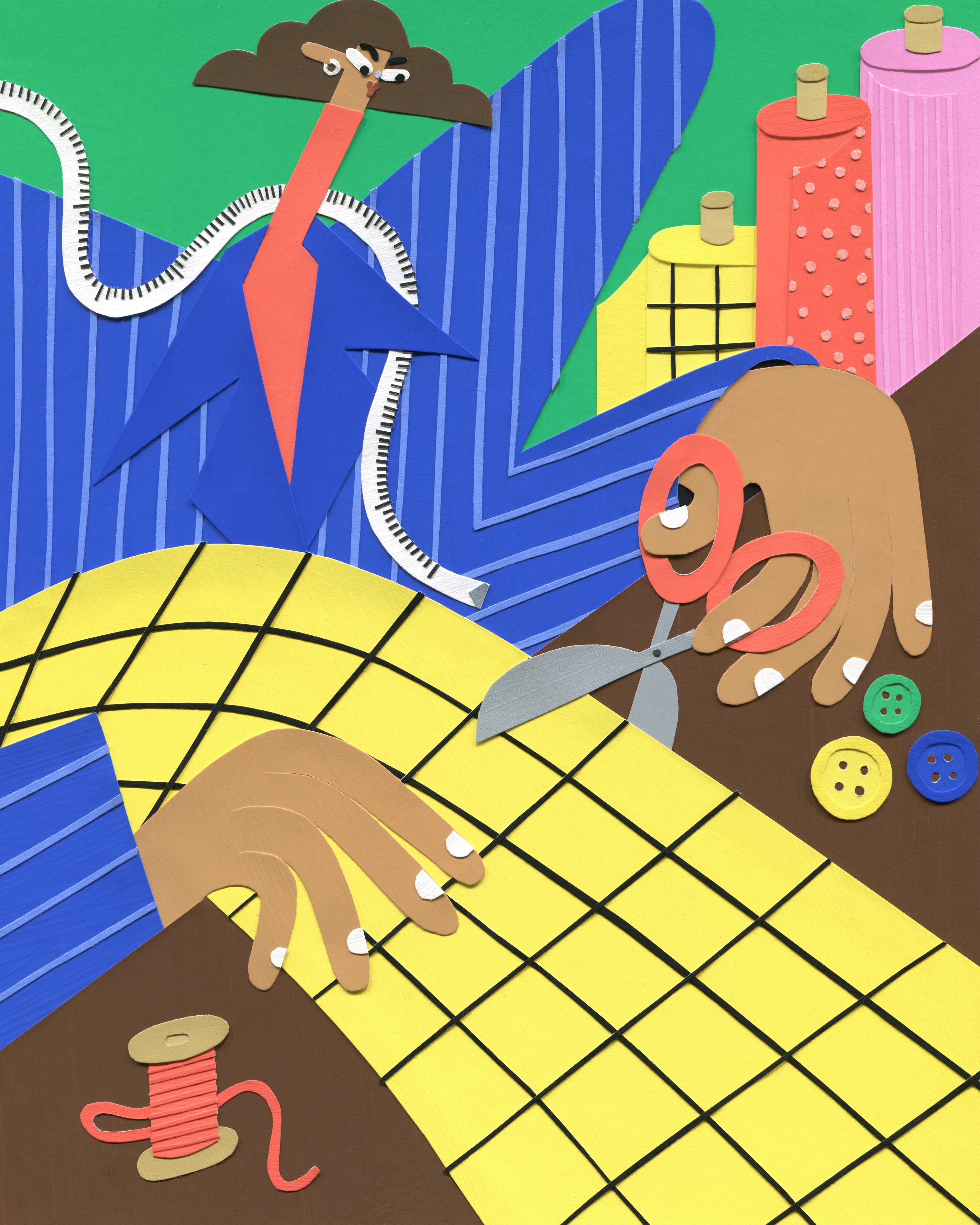 Naomi Anderson-Subryan is a London-based illustrator and maker, working in a variety of mediums - most notably ceramics and collage. Naomi’s unique paper illustrations are hand-cut using painted papers, meaning each piece is one-of-a-kind. Recognised for using bright colours and creating distinct, expressive characters, Naomi’s collages are humorous and otherworldly. Inspired by her background in performing arts and a love for all things kitsch, theatricality and nostalgia are at the heart of Naomi’s work. The world’s she creates are both vaguely familiar and yet unlike anything else.