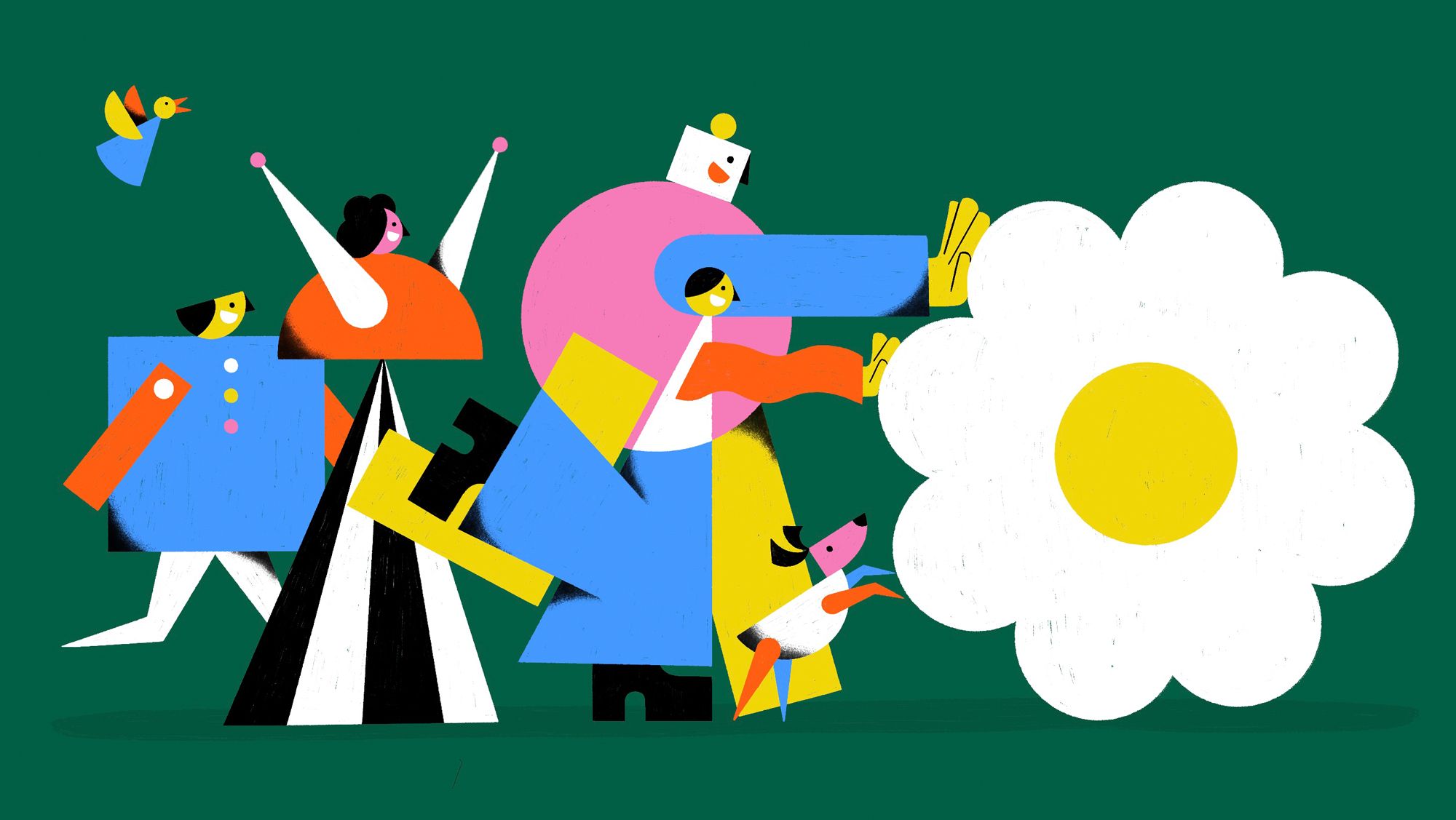 world is built of geometric shapes and rich colors, filled with joyful